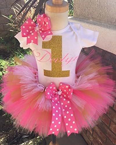 Pink and Gold 1st First Birthday Tutu Outfit Set Dress - Size 12-18 mo with Personalized Name