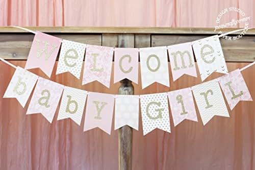 Pink and Gold Baby Shower Banner | Welcome Baby Girl