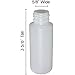 Made with HDPE BPA free plastic. The bottle measures 1-3/8 inches in diameter and has a height of 3-5/8 inches to the top of the neck. With the cap on the height is 4 inches. The opening for filling is 5/8 inches.