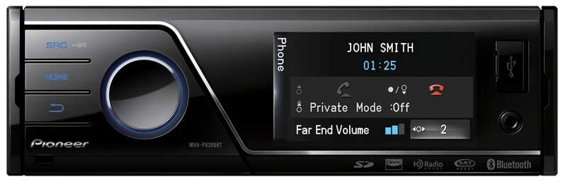 The MVH-P8200BT features built-in Bluetooth technology, which allows you to take incoming calls through your vehicle's sound system. Connecting your Bluetooth-enabled phone is a snap, and gives you access to all your contacts. Best of all, you can make or take a call without a headset.