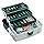 Three tray tackle box with brass latch and side tool racks.