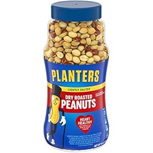 With an irresistible crunchy texture, satisfying taste, Planters Dry Roasted Peanuts are cooked without oil. Seasoned with a touch of sea salt, these nuts are lower in sodium but not flavor, making them a great way to fulfill your cravings for a salty snack without the guilt. The dry roasted lightly salted peanuts have 75 mg. of sodium per 1 oz. serving for a heart-healthy snack that's perfect for eating while on the go. Each jar of Planters peanuts is 16 ounces and stays fresh thanks to the convenient twist off lid.