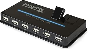 Plugable USB 2.0 10-Port High Speed Hub with Power Adapter and Two Flip-Up Ports