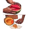 Pomegranates are a super food with many known health benefits that contribute to the health of blood vessels, heart and skin and pack a punch with red antioxidant pigments, Vitamins B1, B2, B6 and C, potassium and copper. Enjoy these health benefits of the pomegranate by quickly and easily removing the hundreds of seeds that a single pomegranate can contain with the pomegranate de-seeder tool. Developed for home use by Israeli co-operative pomegranate farmers, the tool is designed to pit the entire pomegranate in less than 2 minutes. To use remove the crown and cut pomegranate in half. Place half of the pomegranate on the grid and cover the fruit with dome top and then tap firmly with a large, heavy spoon. Seeds fall out into bowl with no mess or fuss. Set includes: a bowl to catch the seeds, a grid to place the pomegranate on and a flexible dome lid. Dishwasher safe.