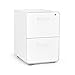 Poppin Stow 2-Drawer File Cabinet - White. Powder-Coated Steel. Legal/Letter Sized Drawers. Fully Painted Inside and Out. Two Keys Included. 1 Lock for Both Drawers.
