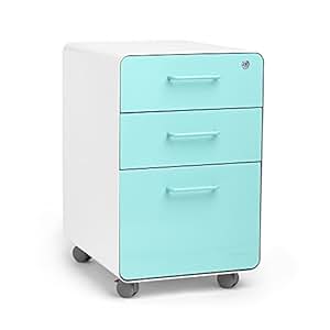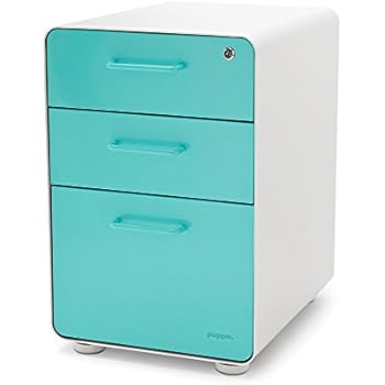 Poppin White + Aqua Stow 3-Drawer File Cabinet, Available in 10 Colors, Legal/Letter