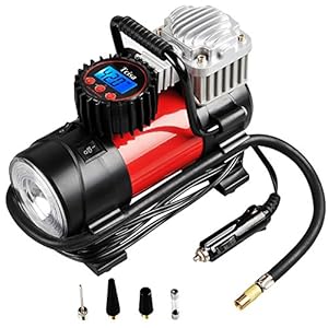 - SMART PRESET INFLATION: Simply preset the air compressor to your target PSI and it will auto shut-off when reaches to avoid over-inflation. Its powerful 140W automobile tire pump delivers inflating air at impressive rate of 35 L/min.