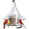 - 𝗖𝗔𝗣𝗔𝗖𝗜𝗧𝗬: Holds 1 1/2 gallons of seed. This is one the LARGEST Bird Feeders on the market. The LARGE 17 inch Diameter Squirrel Proof Dome Protects Seed from rain and snow. Large capacity Bucket means Fewer Trips to Refill. Clear-view, Easy-flow Seed dispensing means birds peck at a seed and it falls out in front of them onto the tray for Easy Dining.