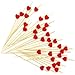 PuTwo Cocktail Toothpicks 100 Counts Cocktail Picks Handmade Natural Bamboo Cocktail Sticks Eco-Friendly Appetizer Skewers for Cocktail Appetizers Fruits Dessert - Red Hearts