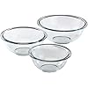 Pyrex Smart Essentials 3-Piece Prepware Mixing Bowl Set, 1-Qt, 1.5-Qt ,and 2.5-Qt Glass Mixing Bowls, Dishwasher, Microwave and Freezer Safe