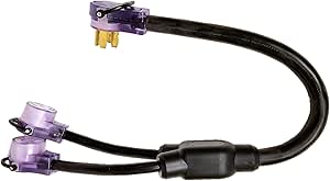 Happy Trails RV Cords is proud to introduce our new line of "Y" adapters for the RV industry. These adapters will address any situation that calls for splitting a single power pole outlet into two seperate lines. This adapter is our new straight blade 14-50P 50A male to (2) 30A female splitter. Features include: Heavy gauge wire Lighted plugs to indicate positive power connection Folding pull handles for easy disconnect Share power with a neighbor Plug your RV into one side and your golf cart into the other Item #8951T Part No. R50M30FLY