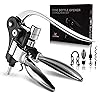 - EASY TO USE CORKSCREW: Grip handles around bottle neck and use lever to insert spiral and remove the cork from the bottle in a matter of seconds. Great for all levels of wine drinkers from novice to connoisseur.