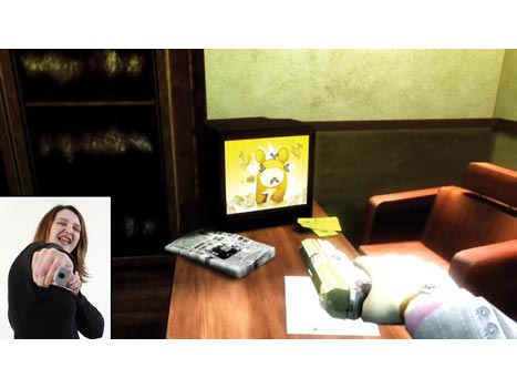 ![]() Your pistol is directly controlled by the Wii Remote while you aim on-screen. View larger. |