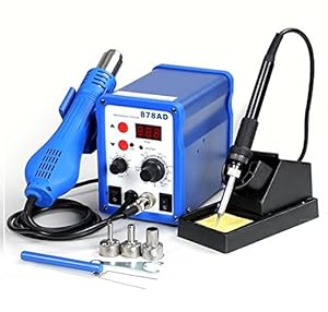 2in1 878ad Rework Soldering Station Iron Welder Hot Air Gun & Tip 640w with Iron & Heat Gun Holders Brand New in Box
