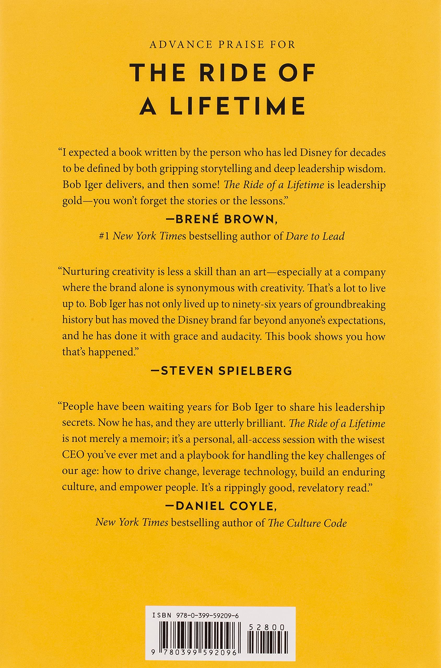 “People have been waiting years for Bob Iger to share his leadership secrets. Now he has, and they are utterly brilliant. The Ride of a Lifetime is not merely a memoir; it’s a personal, all-access session with the wisest CEO you’ve ever met and a playbook for handling the key challenges of our age: how to drive change, leverage technology, build an enduring culture, and empower people. It’s a rippingly good, revelatory read.”—Daniel Coyle, New York Times bestselling author of The Culture Code