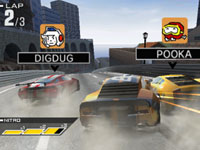 Because of the low resolution of the game, the 3D effect does not help in corners. Certain fields in a track you still can't see if you need to make a left or a right. A problem which could have been avoided when the red corner arrows would be displayed in a higher resolution; however with the 3DS already maxed out graphically, that would be impossible.