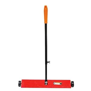 This 18" Rolling Magnetic Sweeper features: * Heavy duty steel construction * Picks up 25 pounds of metallic debris including nails, tacks, shavings and screws. * Head measures: 3" x 1/2" x18" * Adjustable handle length: 21" to 35" * Works over a variety