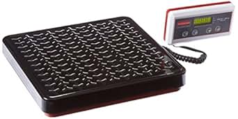 Proper inventory control begins at the receiving door. Remote LCD display with 9-foot cord mounts on walls. Tare feature removes weight of container easily. Rugged design handles heavy packages and containers. Non-skid platform with grid design keeps packages in place. Auto-off reserves battery power. AC adapter (included) or 9V battery (not included).