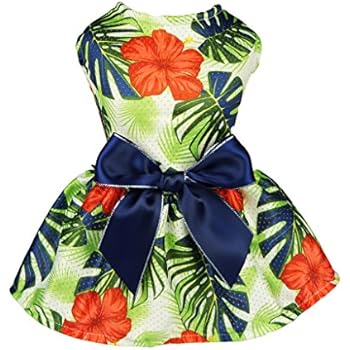Fitwarm Hawaiian Palm Dog Clothes Dresses Vest Shirts Pet Cat Apparel Green Large