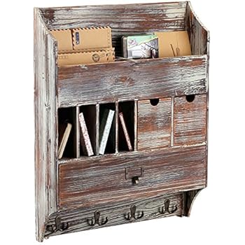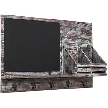 This item: Rustic Dark Brown Wood Wall Mounted Mail Sorter Key Hook Organizer Rack w/ Memo Bulletin Chalkboard Sign
