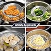 - Quick separation of hot oil or boiling water. Perfect for your favorite french fries, poached eggs, vegetables, meat, wonton, etc. It doesn't dissolve like plastic in hot oil. When scooping up the food, it is easy to let the liquid flow out.