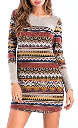 - This is a nice, casual feeling dress with tribe patterns. It is the above knee length and easily dress it up with accessories, and with very soft material, cute, figure flattering. Simple and classy striped design with short length cut of the dress makes it suitable for fall all daily wear, party and any occasions