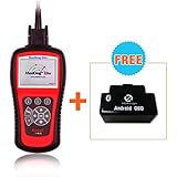• Read and clear trouble codes (over 7000 generic and manufacturer-specific codes), turn off check engine light, view freeze frame; display, record, and graph 90+ real-time parameters; calculates MPG