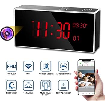 Special Feature ●Security Hidden Camera Photo Frame with 365 Days Battery Life ●Hidden Surveillance Camera with Wi-Fi enable and free app Spy Hidden Camera | 1080p FULL HD | No Wi-Fi Needed | Support 32GB Micro SD Card (no included) | Solid-Cast Front Panel | Motion Detection | Charger the Phone and Records HD Video | USB Cable | Bonus Charging Cable 2in1 & Micro SD Сard Reader | User Manual in English and legible | 12 Months Warranty and 24/7 Customer Support •1080P HD video record non-functional smoke detector home security camera•Wi-Fi enable with free app decoy smoke detector cover ip camera•180 days battery power standby hidden camera wifi smoke detector, •It has a concealed 125 degree bottom viewing angle camera lens smoke alarm recorder•1080P HD live view mode with push alarm smoke detector camera wifi •HD covert Wi-Fi security camera with built-in color camera and DVR•30 feet invisible night vision smoke detector nanny camera recorder ●Hidden camera alarm clock built-in wireless stereo music player ●Hidden camera motion activated and continuous video recording●Wi-Fi APP nanny camera alarm clock view online video anytime and anywhere ●Compact table alarm clock with extendable snooze ●125 degree wide angle viewing camera lens 2019 The Latest / WiFi Hidden Camera / 1080P FULL HD Live Streaming / Remotely View / Motion Detection / Loop Recording / H.264 Compressed Format, Store More Video Than Other Cameras on the Market ❤️Real 1080P WiFi Clock Camera ❤️160° Viewing Angle ❤️IR Light Lens ❤️Superior 33FT Night Version ❤️Motion Detection ❤️Alarm Monitoring ❤️Neat Appearance ❤️Hidden Camera Spy Camera Clock Wireless Cameras Spy Cam for Home