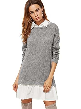 - Long Sleeve, Loose Sweater Skirt, Button Back, Color Block,Contrast Collar And Hem
