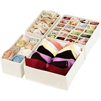 Magicfly Bra Organizer, Closet Underwear Organizer, Upgrade Sturdy Collapsible Drawer Divider for Socks Panties Bra Ties Clothing, Set of 4, Beige