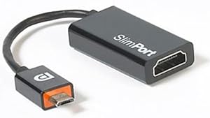 SlimPort® SP1002; Connect mobile devices to any big screen. High Speed micro USB (male) to HDMI (female) connector cable (4.26cm x 2.21cm x 0.99cm)—Supports Full HD and 3D at 1080p @60Hz, 24bpp