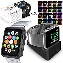 Orzly ULTIMATE PACK for Apple Watch (38 MM) - Gift Pack Includes Orzly Compact Stand & Multi-Pack of 20 Assorted Colour Orzly FacePlates
