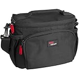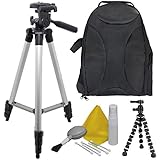 For a case, I'm using the Case Logic TBC302. It fits the camera perfectly with barely enough room in the front pocket to hold a spare battery. The Case Logic TBC303 is much larger but not too useful, for example you can't put the battery charger with the camera. It could hold some credit cards or papers, though.