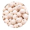 Souarts 30Pcs Wooden Beads Set, Natural Round Wood Beads Loose Beads, Mixed 20mm 25mm 30mm, for Jewelry Necklace Bracelet Making DIY Craft (Wood Beige-30pcs)