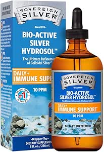 Sovereign Silver Bio-Active Silver Hydrosol for Immune Support - Colloidal Silver - 10 ppm, 8oz (236mL) - Dropper