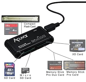 • Acuvar High Speed All-in-1 Memory Card Reader / Writer for SD/SDHC, Micro SD, CF, XD, MS/Pro & Duo Cards