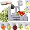 - Best Rated, Latest Design With Unmatched Value: Don't waste your hard earned money on other old & weak 5-blade designs. Our All New Improved 10-blade is GUARANTEED to be markedly stronger than any of the others on the market. You get a complete spiralizing bundle with 10 interchangeable blades, extra blade caddy for safe blade storage, printed color user manual, easy online quick-start guide with our demo videos, and 4 exclusive Spiralizer Ebooks with recipes you can make for the whole family!