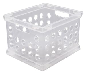 Sterilite 16958612 Small Crate Clear 12-Pack. The crates provide the most versatile storage solution. The crate is great for sorting and displaying CDs and DVDs. They contain a unique indexing feature to create a modular system, making it ideal for offices, kids rooms and college dorms.
