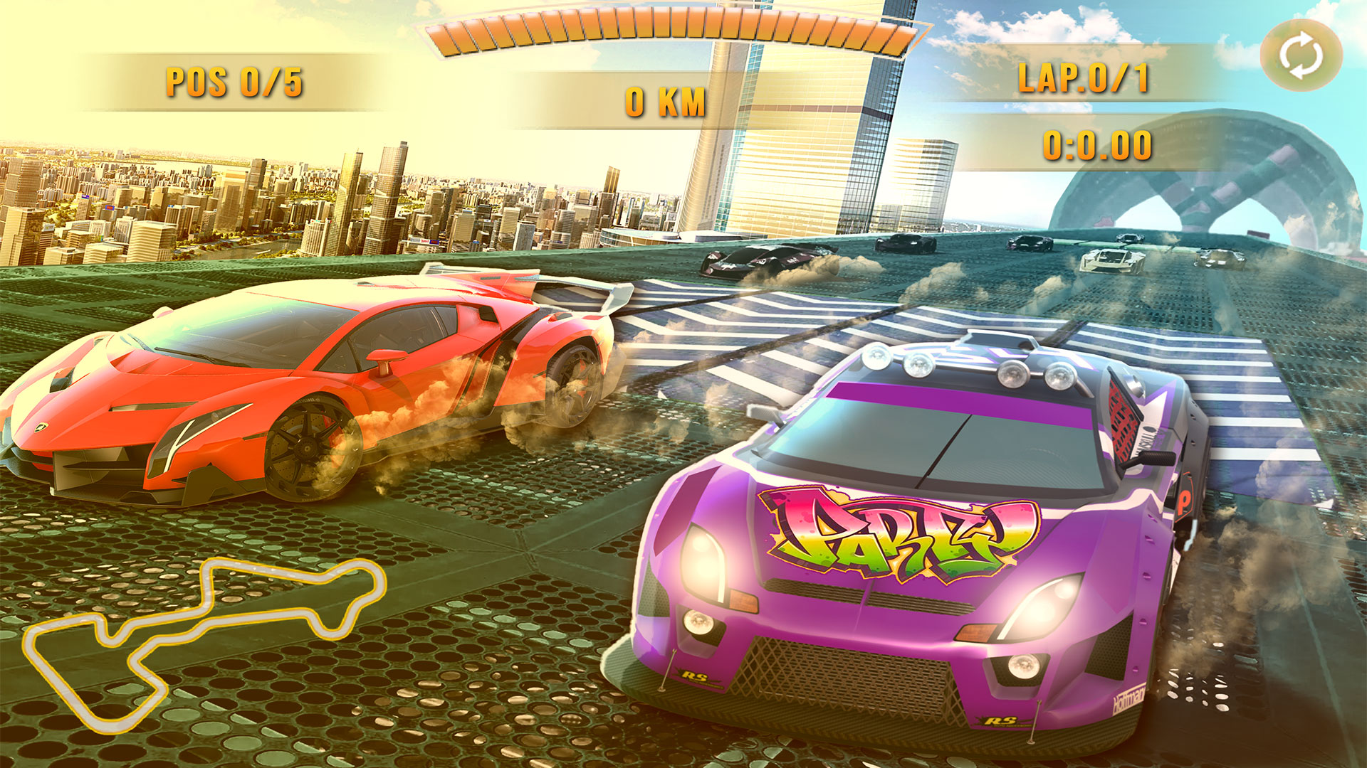 After starting Master Racer: The Stunt Car Racing starts with different race tracks
