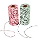 A roll red, white twine, a roll green, white cotton twine, each roll length is 100m/ 328 feet, 2mm in diameter.