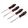Black and red color scheme is a nice touch too. I think there is some type of chrome plating on these pick as a couple of them are turning slightly copper colored at the tips of the tools but this doesn't seem to affect their utility. The lettering on one pick came off after being exposed to lacquer thinner but the black and red colors of the handle remained intact. They now have a very nice broken in look to them. Good style.