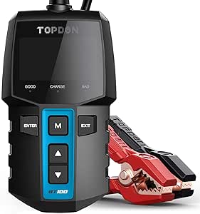 | Special Features | ➤All-in-one car battery tester with cranking and charging system test, load and alternator checking, ➤Design for dummies, with 3 smart LED indicators directly show you whether the battery is good, bad or need to recharge, ➤Compatible with cars, motorcycles, trucks, RVs, ATVs, SUVs, boats, yachts, mowers and even golf carts, ➤Works with 12V regular-flooded, AGM flat plate, AGM spiral, GEL, EFB and deep cycle batteries It offers super accurate readings with a much wider range 100-2000 CCA, ➤30 days return policy. Contact us through Amazon or send email directly to ▶support@topdon.com◀, our professional technical team will help you solve the problem within 24 hours. |
