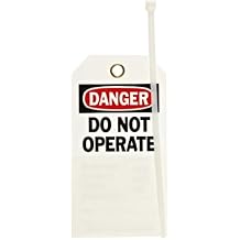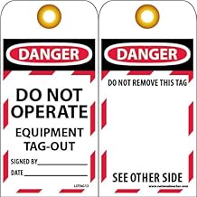 NMC LOTAG13 Lockout Tag, "DANGER - DO NOT OPERATE - EQUIPMENT TAG-OUT," 6" Height x 3" Width, Unrippable Vinyl, Red/Black on White (Pack of 10)