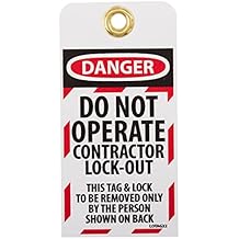 NMC LOTAG32 "DANGER - DO NOT OPERATE CONTRACTOR LOCK-OUT" Lockout Tag, Unrippable Vinyl, 3" Length, 6" Height, Black/Red on White (Pack of 10)