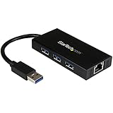 StarTech.com 3 Port Portable USB 3.0 Hub with Gigabit Ethernet Adapter NIC - Aluminum USB Hub w/ Cable - Compact USB 3 Hub w/ GbE Adapter