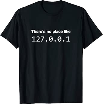 This funny computer tee shirt says "There's no place like 127.0.0.1" Perfect for coding software developer engineer IT programmer geek or tech nerd. If you work in devops and develop locally on your local ip address, you will appreciate this program joke
