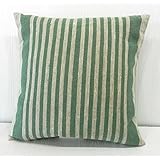 Pillow Cover Farmhouse Linen Green Narrow Stripe 18x18