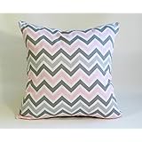Pink and Grey chevron Throw Pillow Cover, Cushion, Accent Pillow, Euro Sham, Cushion Cover - 26" x 26" Zigzag. large square pillow sham. Girls SALE. Nursery