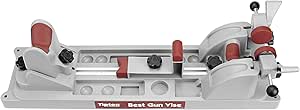 Tipton best gun Vise 181-181tipton gray gun vise181-181 Tipton best gun Vise features, non-marring contact surfaces, every component adjusts to accommodate different firearms and projects, l-shape center post moves where you need it, stiff solvent resistant nylon stands up to years of hard use. 782-731 the gun vise is the ideal third hand for cleaning and Gunsmithing. It features a rubberized cradle and jaws to protect your firearm, quick release cam action for easy access, molded in compartments for solvents and small parts and solvent resistant plastic.