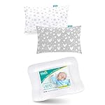 Baby Toddler First Pillow 2 Pack with Pillowcase (13 x 18), Baby Toddler 's Flat Pillows, Machine Washable Soft Travel Pillow Fits Mini Crib or Crib